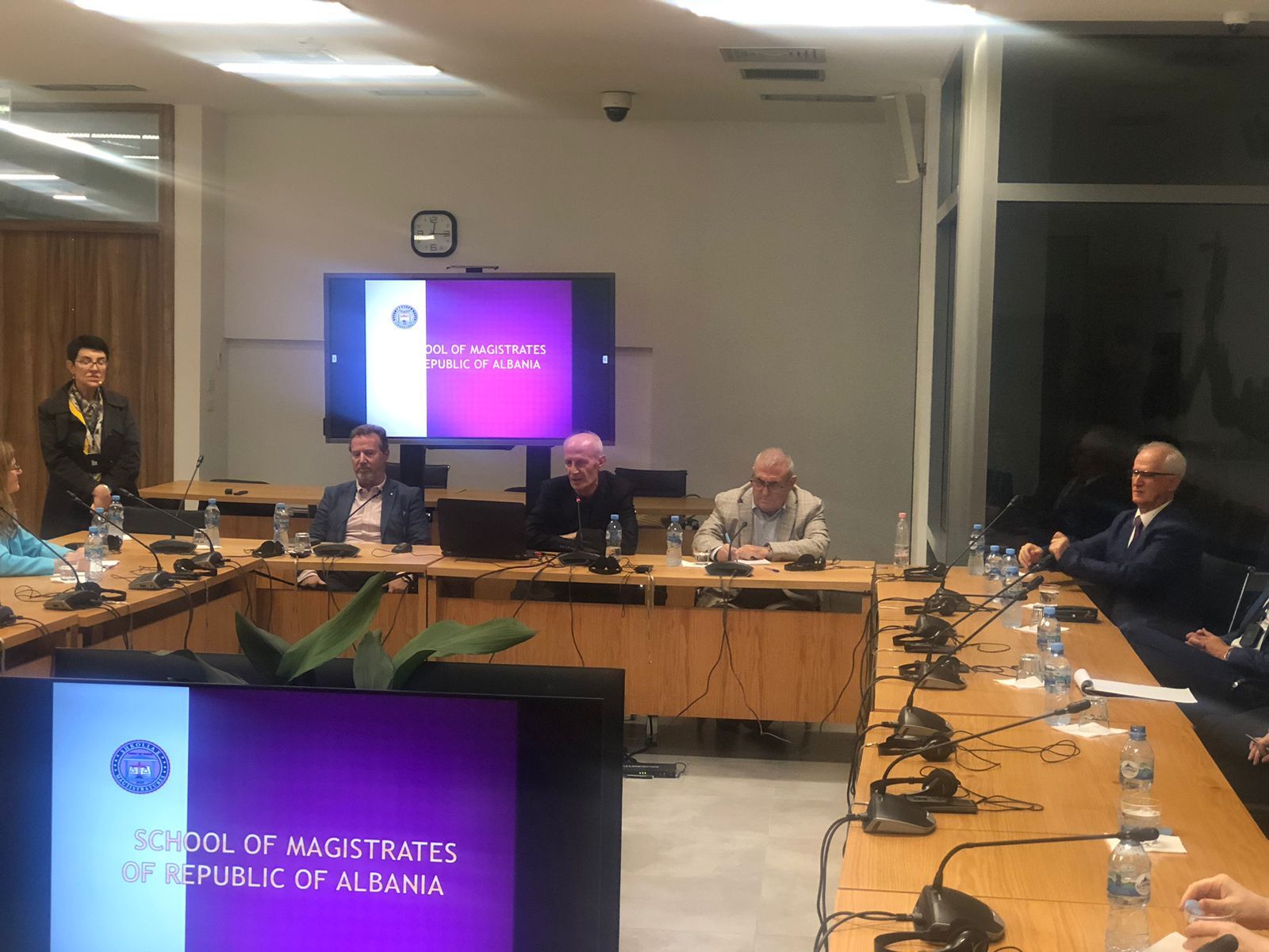 Nga përfaqësuesit e Shkollës, në takim u bë një parashtrim i detajuar i të gjitha praktikave institucionale të punës në veprimtarinë e Shkollës së Magjistraturës dhe veçanërisht përsa i takon:
