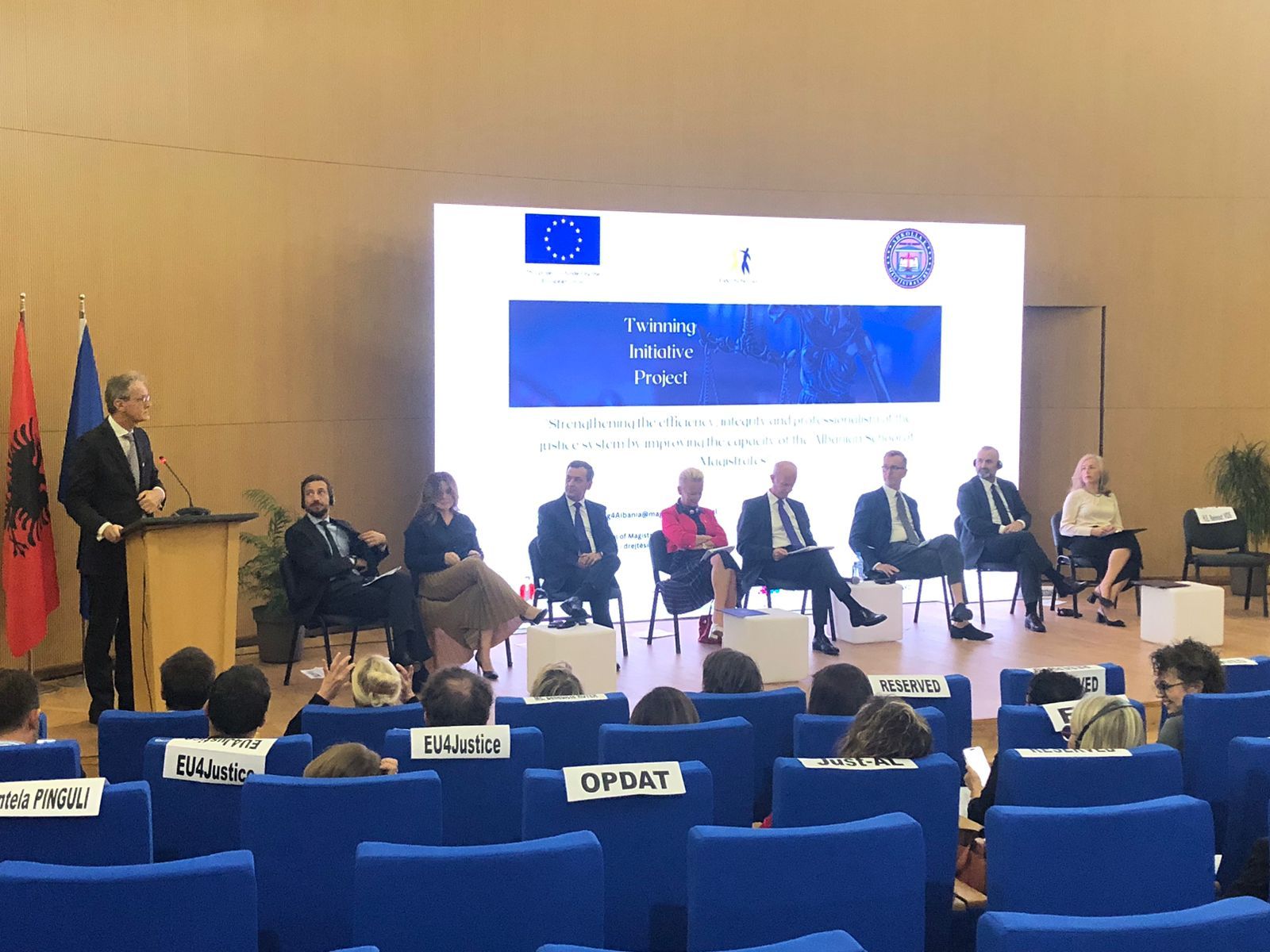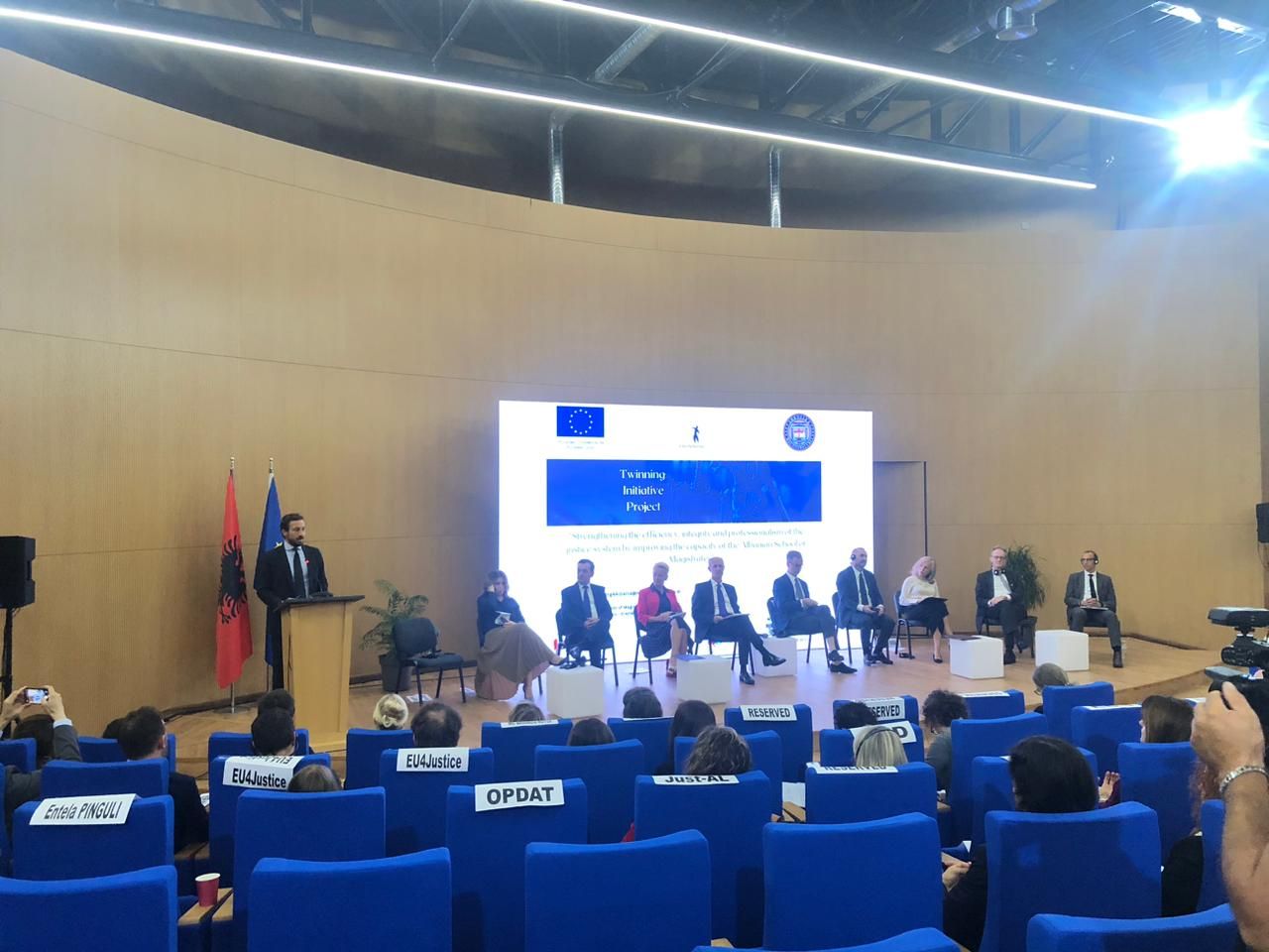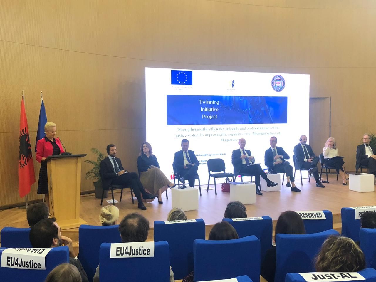 Shkolla e Magjistraturës në bashkëpunim me Projektin e Binjakëzimit, mbështetur nga Bashkimi Evropian, organizuan sot Konferencën e Hapjes, që shënon pikënisjen zyrtare të implementimit të projektit të binjakëzimit “Fuqizimi i efikasitetit, integritetit dhe profesionalizmit në sistemin e drejtësisë me anë të përmirësimit të kapaciteteve të Shkollës Shqiptare të Magjistraturës.”