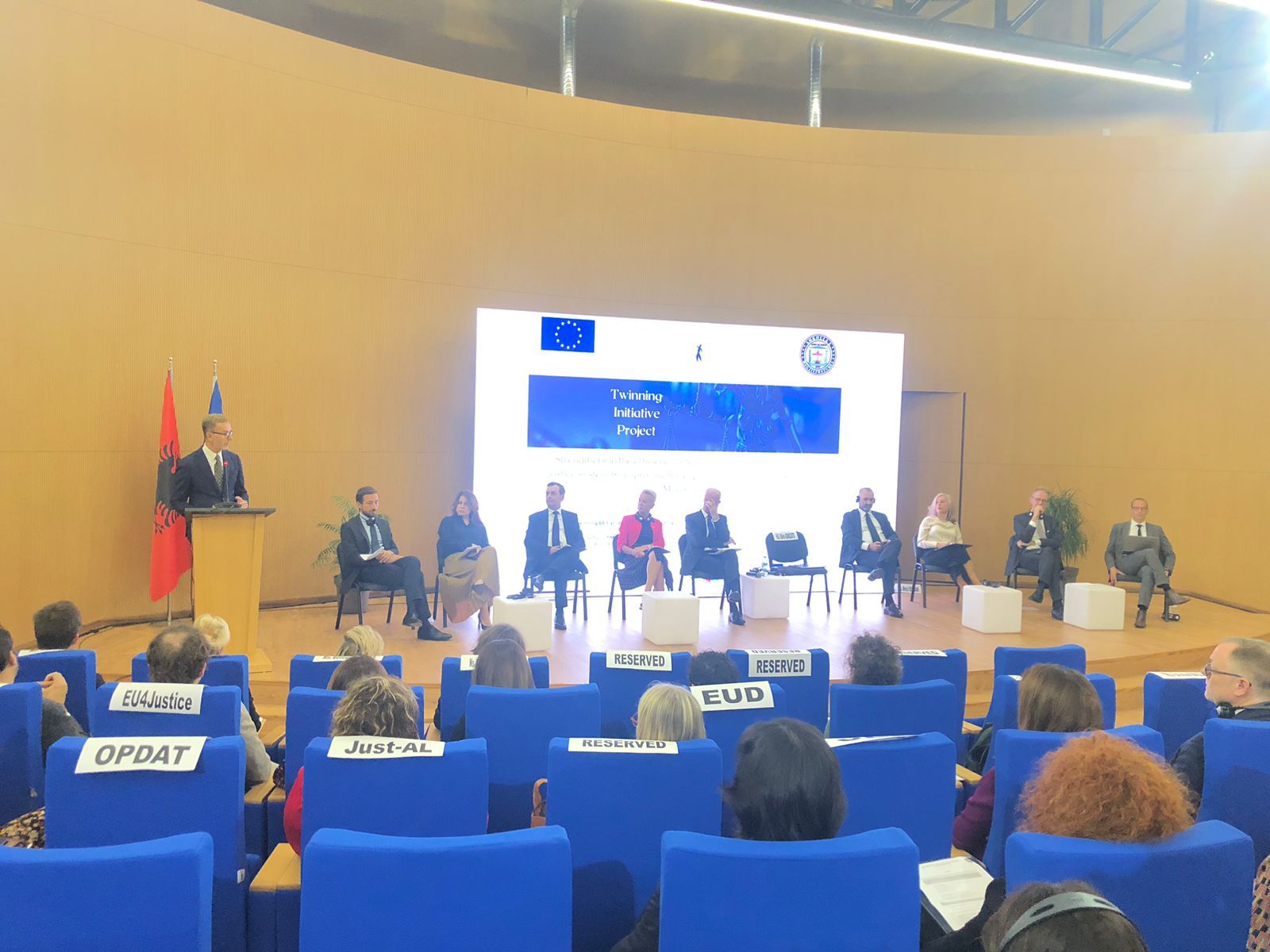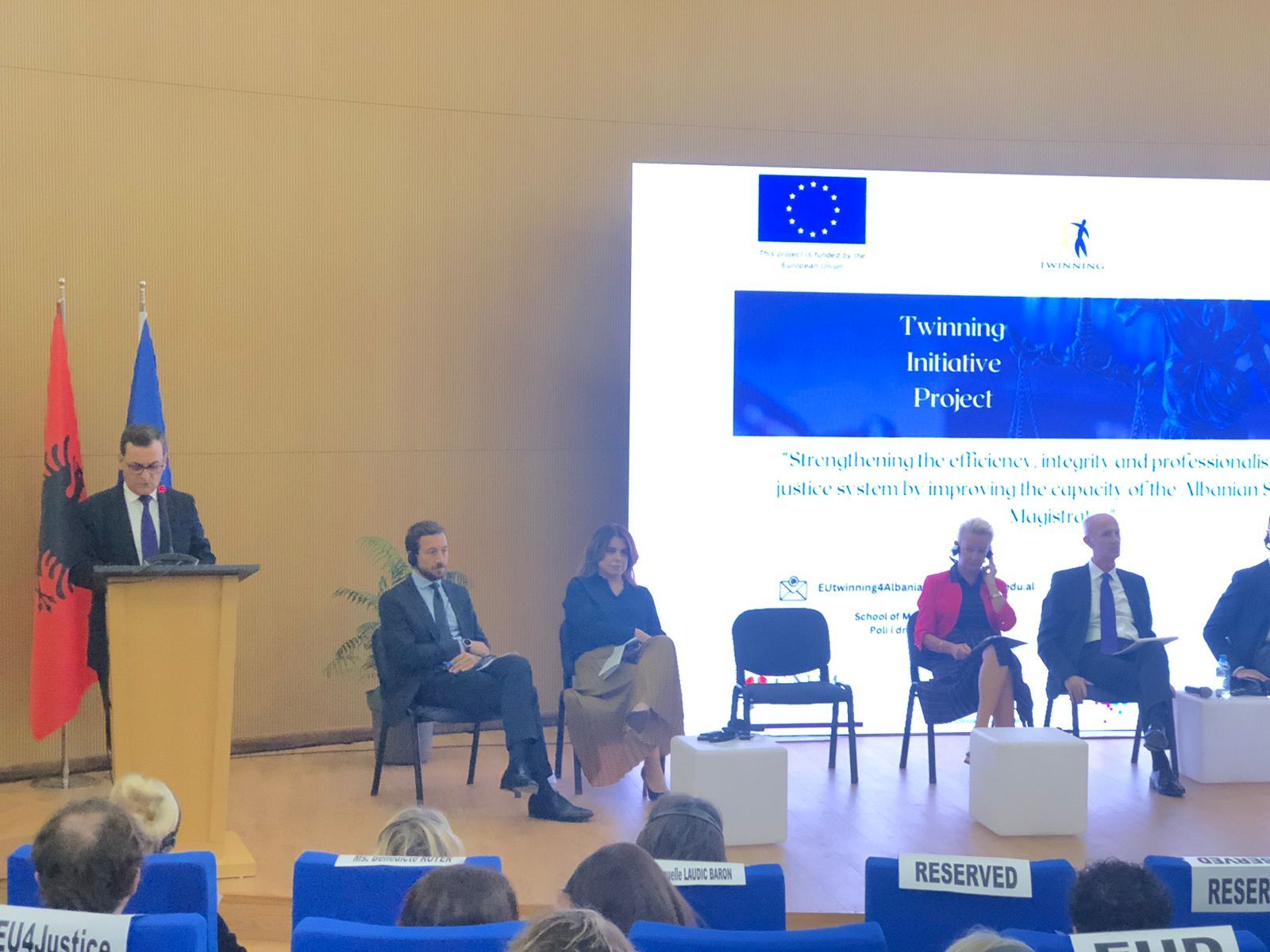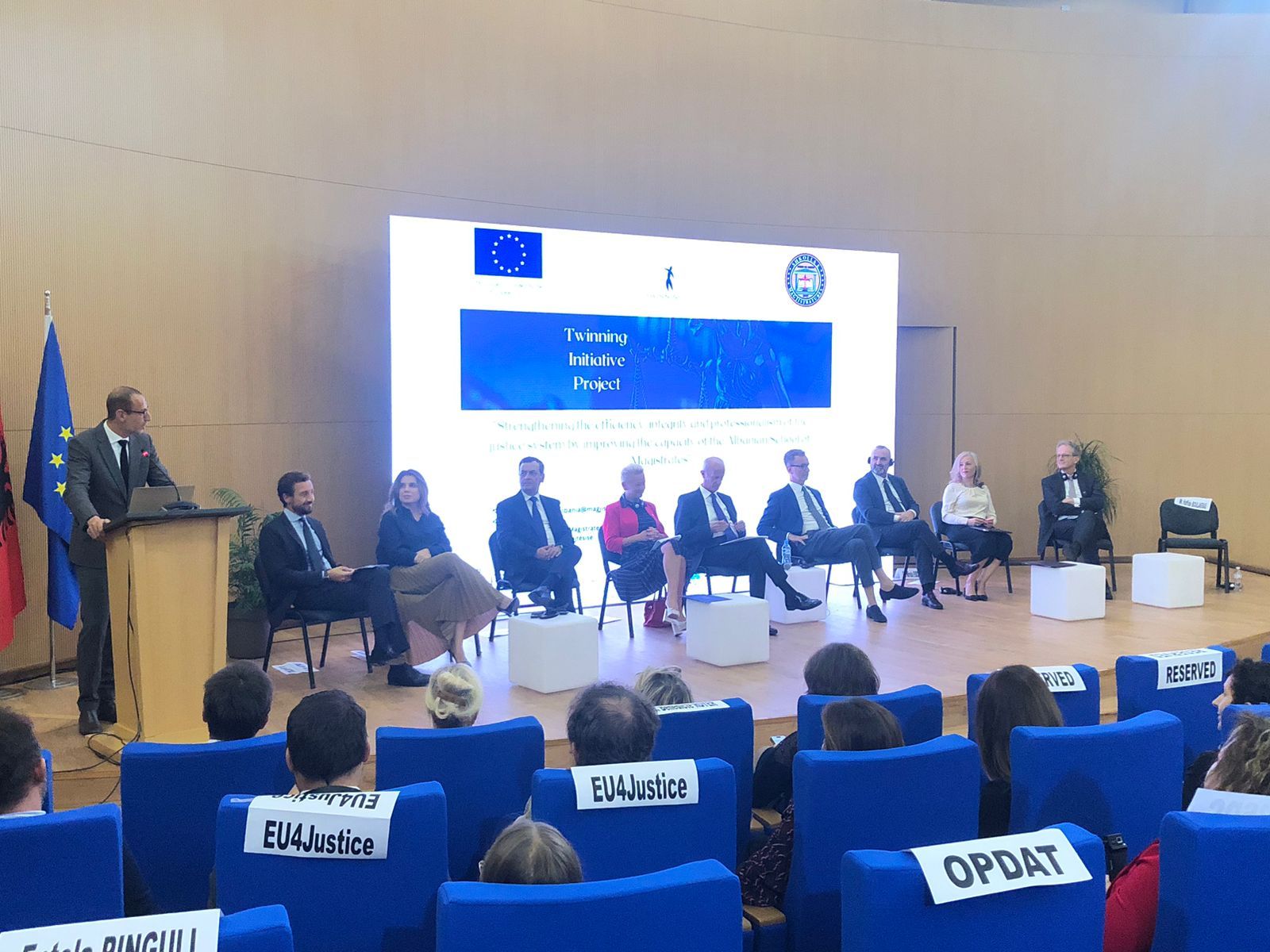 Shkolla e Magjistraturës në bashkëpunim me Projektin e Binjakëzimit, mbështetur nga Bashkimi Evropian, organizuan sot Konferencën e Hapjes, që shënon pikënisjen zyrtare të implementimit të projektit të binjakëzimit “Fuqizimi i efikasitetit, integritetit dhe profesionalizmit në sistemin e drejtësisë me anë të përmirësimit të kapaciteteve të Shkollës Shqiptare të Magjistraturës.”