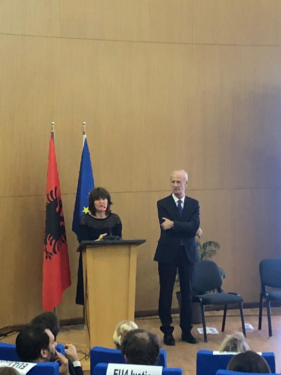 Aktivitetin e përshëndetën personalitete të larta dhe drejtues të institucioneve të ndryshme të sistemit të Drejtësisë, si dhe përfaqësuesit e trupit diplomatik në Shqipëri, si Drejtori i Shkollës z. Arben Rakipi, Kryetar i Këshillit Drejtues dhe Kryetar i Gjykatës së Lartë Z. Sokol Sadushi, Ambasadori i BE-së në Shqipëri, Silvio Gonzato, Kryetarja e Këshillit të Lartë Gjyqësor, Znj. Naureda Llagami, Kryetarja e Këshillit të Lartë të Prokurorisë, Znj. Mirela Bogdani, Ministri i Drejtësisë, Z. Ulsi Manja, Ambasadorët e Francës, Italisë dhe Hollandës, si dhe zv/Drejtori i Shkollës Kombëtare të Magjistraturës së Francës.